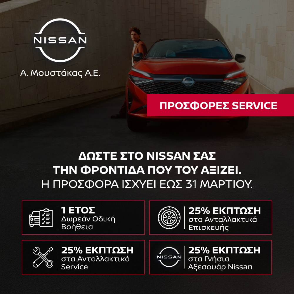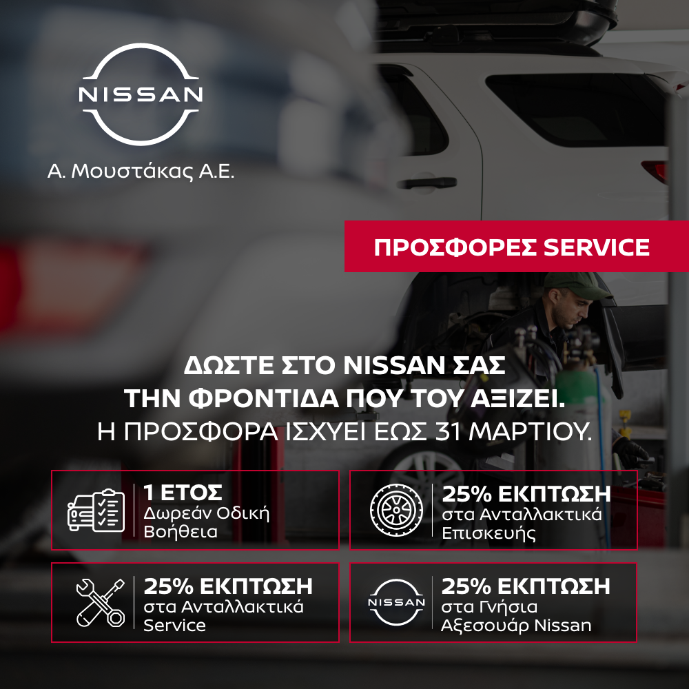 Email: info@moustakas-nissan.grH πραγματοποίηση τεχνικού ελέγχου και συντήρησης στο δίκτυο των εξουσιοδοτημένων επισκευαστών της Nissan είναι απαραίτητη, προκειμένου να κινηθείτε με ασφάλεια αλλά και με μεγαλύτερη οικονομία καυσίμου κατά την χειμερινή περίοδο. Για αυτό φροντίζει το άρτια εκπαιδευμένο τεχνικό προσωπικό της Nissan, με κορυφαία διαγνωστική τεχνολογία και γνήσια ανταλλακτικά που εγγυώνται το καλύτερο δυνατό αποτέλεσμα για τη συντήρηση και επισκευή του αυτοκινήτου σας.